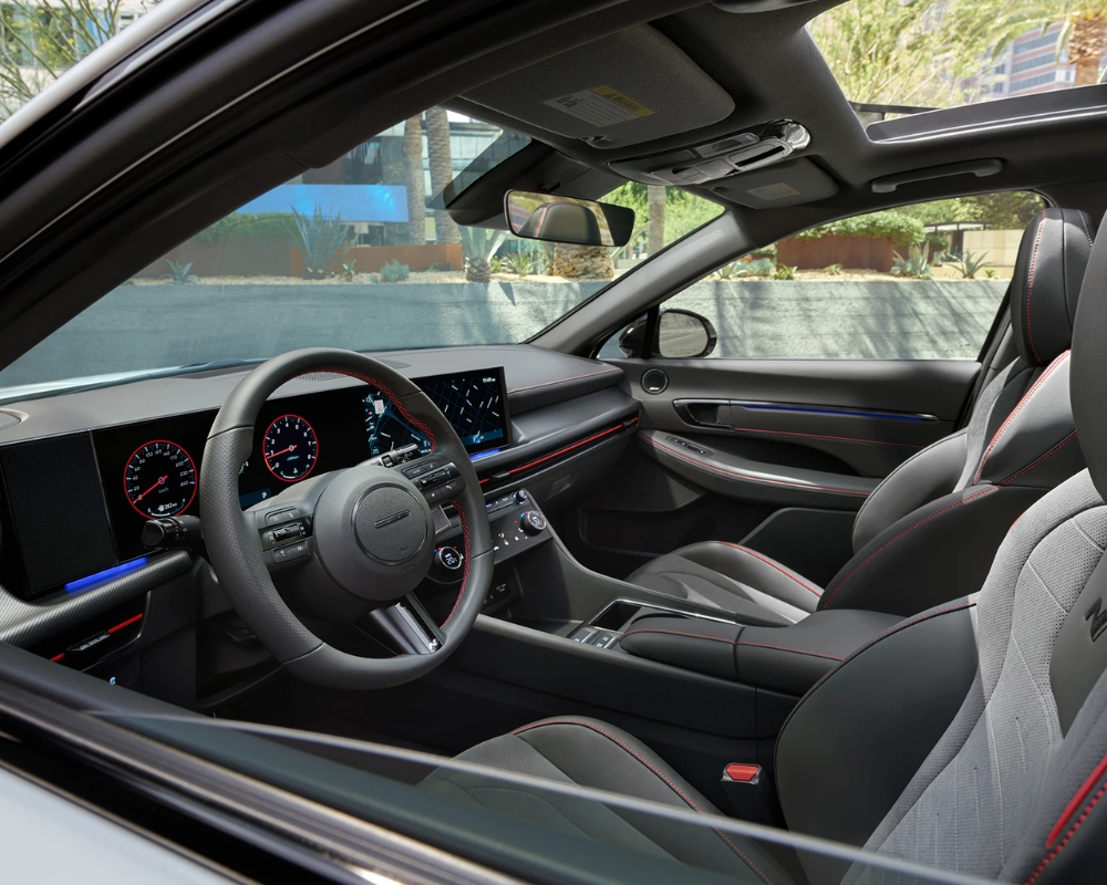 Drivers seeking a more performance-focused experience can choose the available Sonata N Line model. This version features a powerful 2.5-litre turbocharged GDI engine producing 290 horsepower and 311 lb-ft of torque. With a sport-tuned suspension, N Line styling elements, and 19-inch alloy wheels, the N Line model offers an engaging driving experience for those who enjoy a more spirited ride.